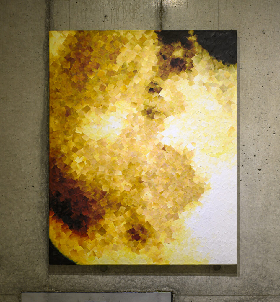 板間さん、ディファレント参加ありがとうございました!映像や写真から切り取った小さな紙片を重ねることで、動画の一時停止のような「粒子のブレ」を表現するという板間さんの作品。実際に作品を目にすると、そのサイズ感や紙片の重なり具合から、板間さんが表現したい時間や空間の感覚がリアルに伝わってきて、ネットだけでは感じられない存在感でした。とてもオリジナリティのあるディファレントな存在だと思いました。吉田貴紀賞、納富健太郎賞のダブル受賞も頷けます。