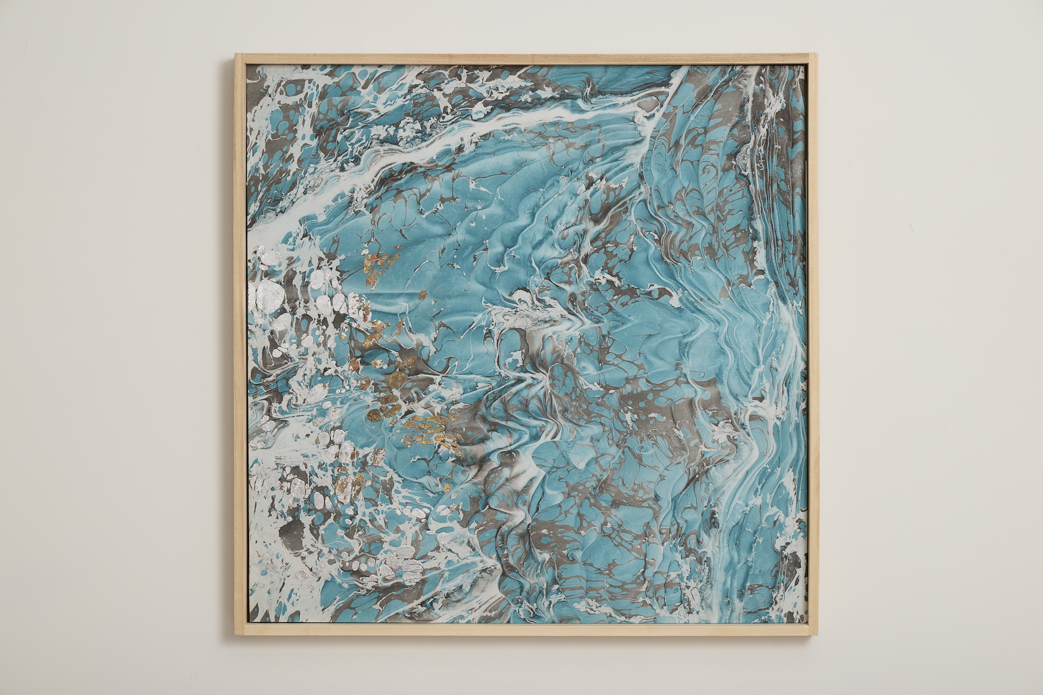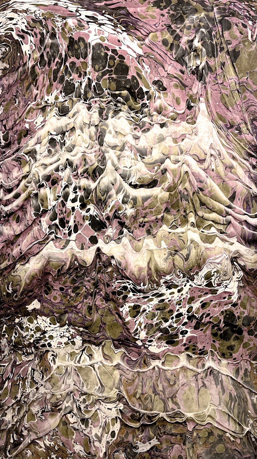 中核にあるのは「墨流し」という伝統的な染色技法です。水面に広がる染料の動きを見つめ、揺れ動くかたちにゆだねながら、生命の循環や自然とののつながりを探っています。