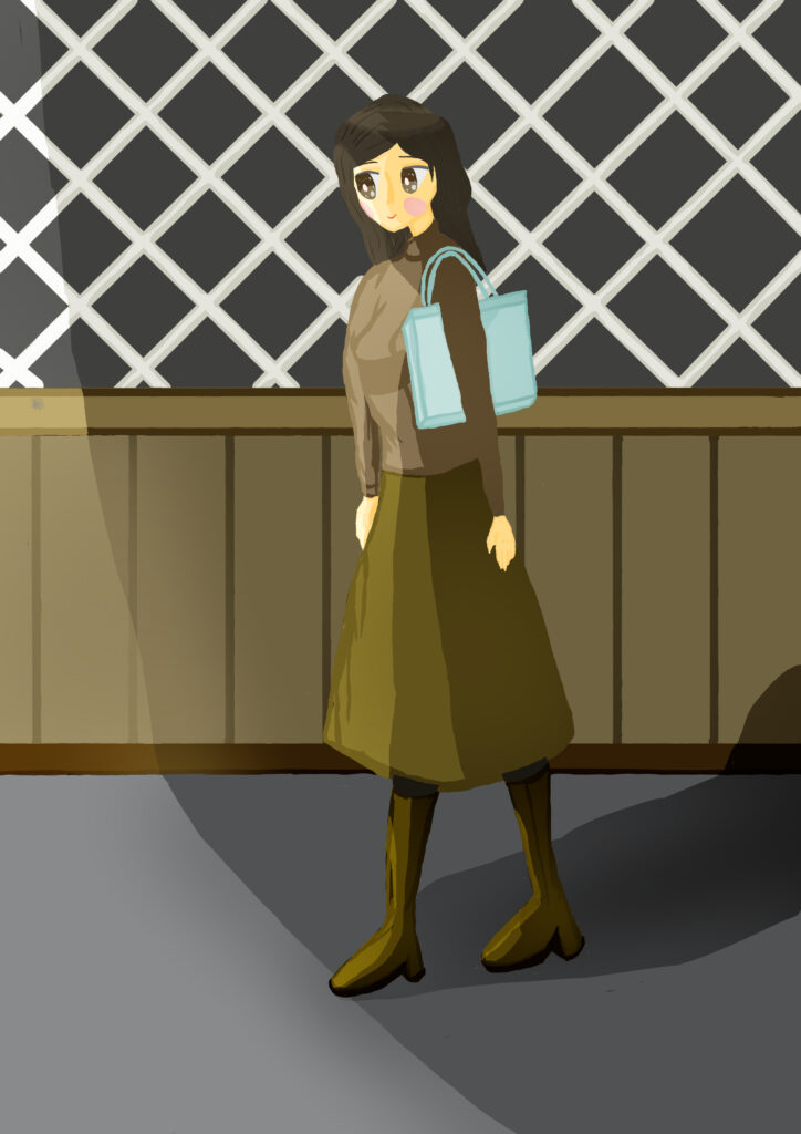 作品概要 晩秋の日の朝、出勤途中のお姉さん…