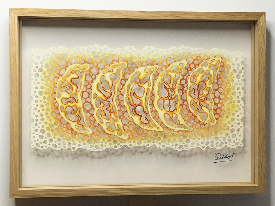 「あなたから 私はそう見えているかもしれないけれど それがすべてではないのです」 ,「私の内側には本当はこういうものがあるのですよ」というメッセージが、断面の作品には込められています。